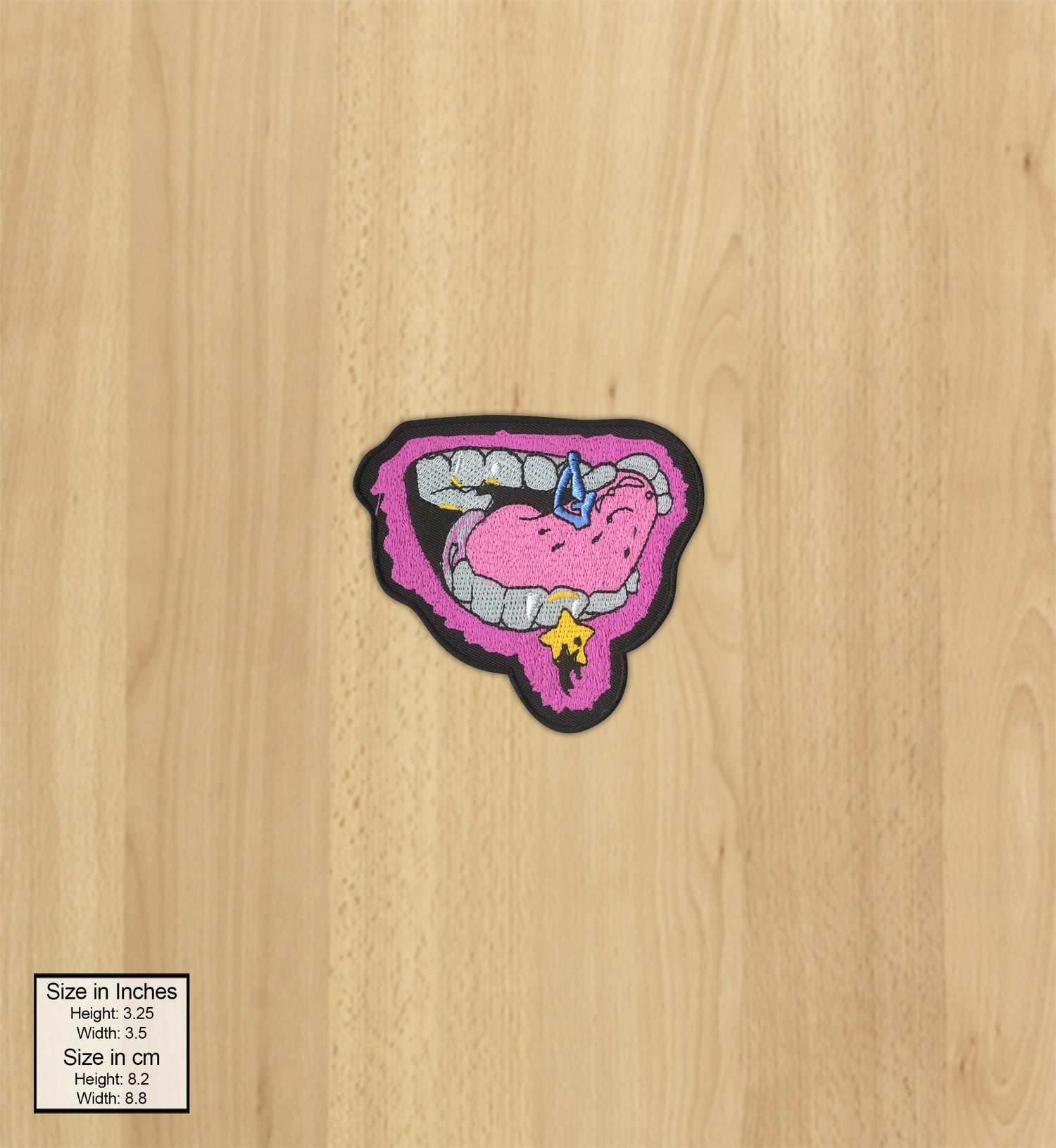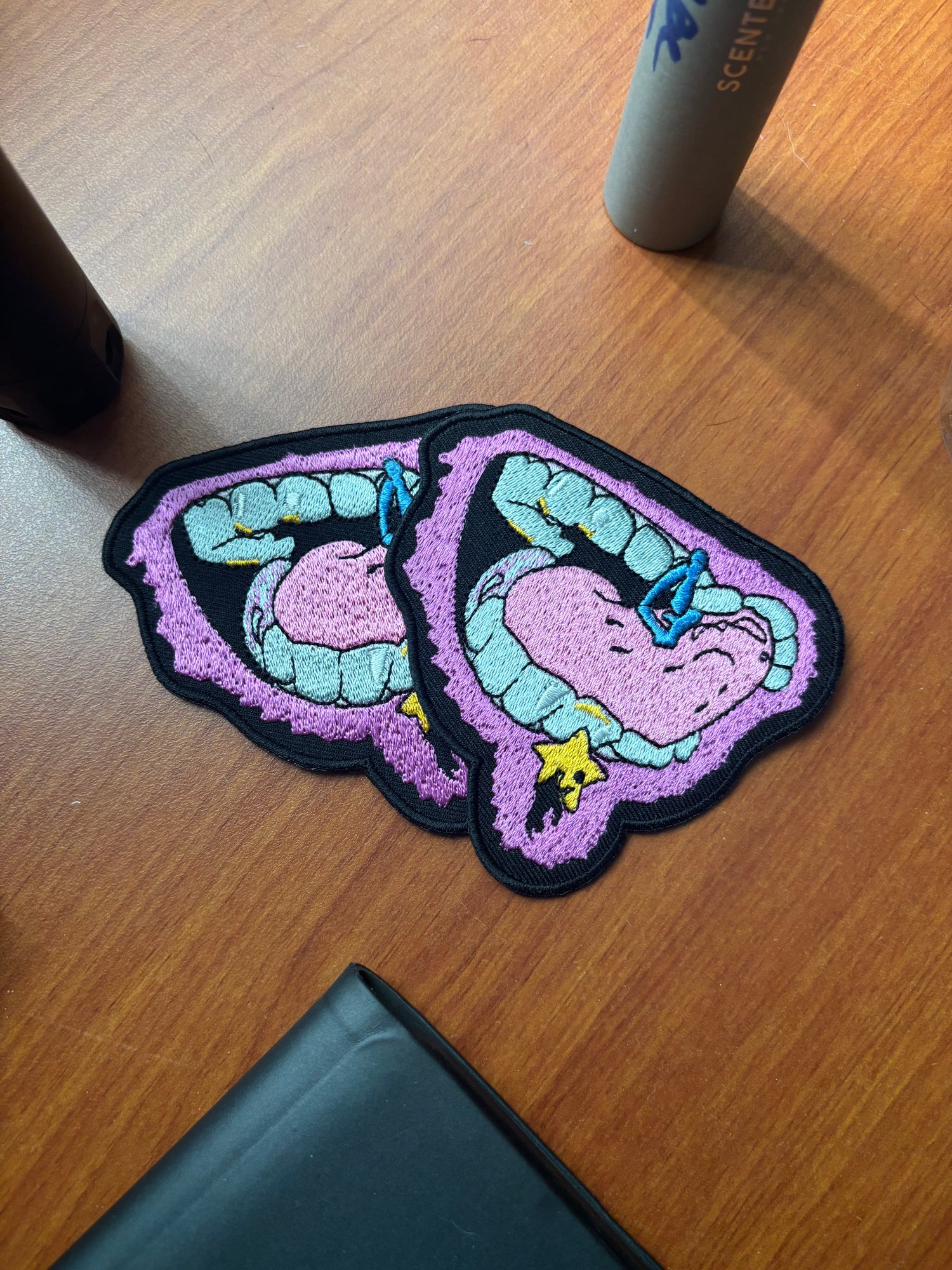Product is a 3 inch embroidery iron on patch, drawn by artist Javar Grace