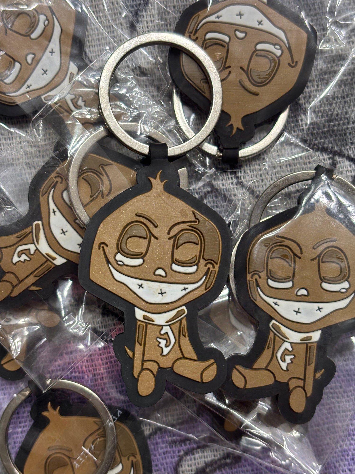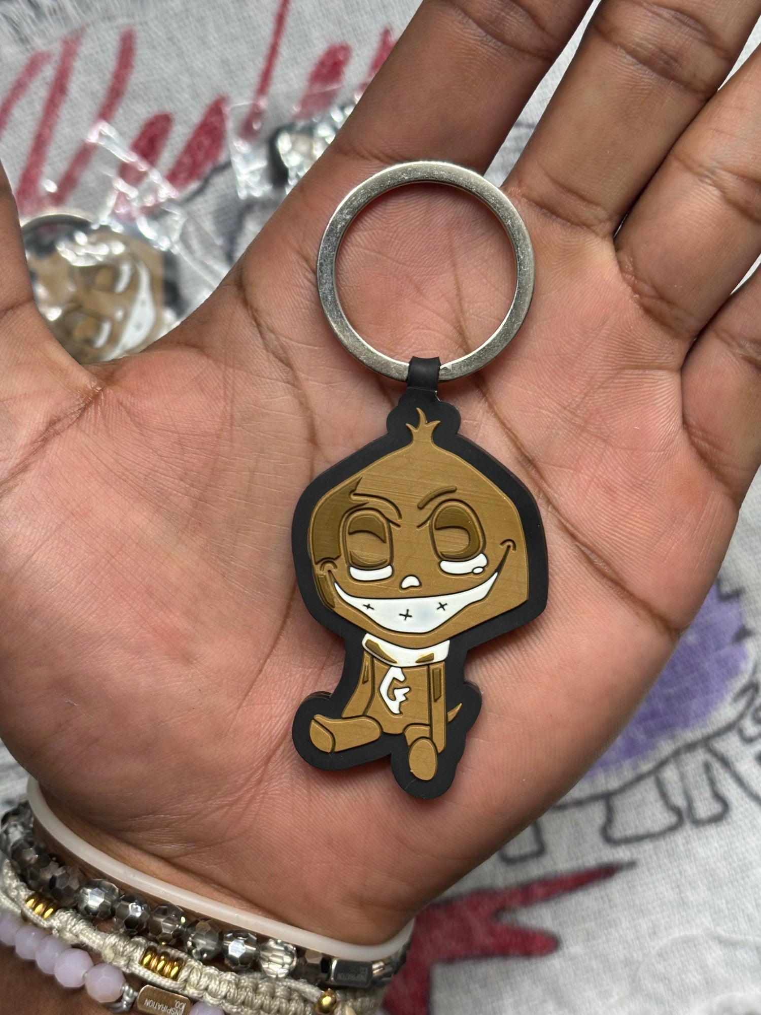 Item is a 3 inch rubber keychain drawn and designed by artist Javar Grace